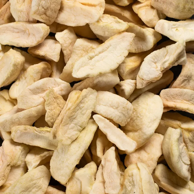 In zakjes van 200gr. Gelijk te gebruiken appelpartjes, lekker voor tussendoor.