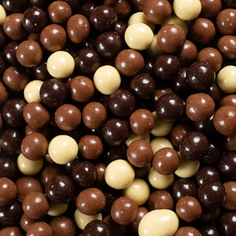 Hazelnoten met een mooie laag lekkere witte, melk en pure chocolade.