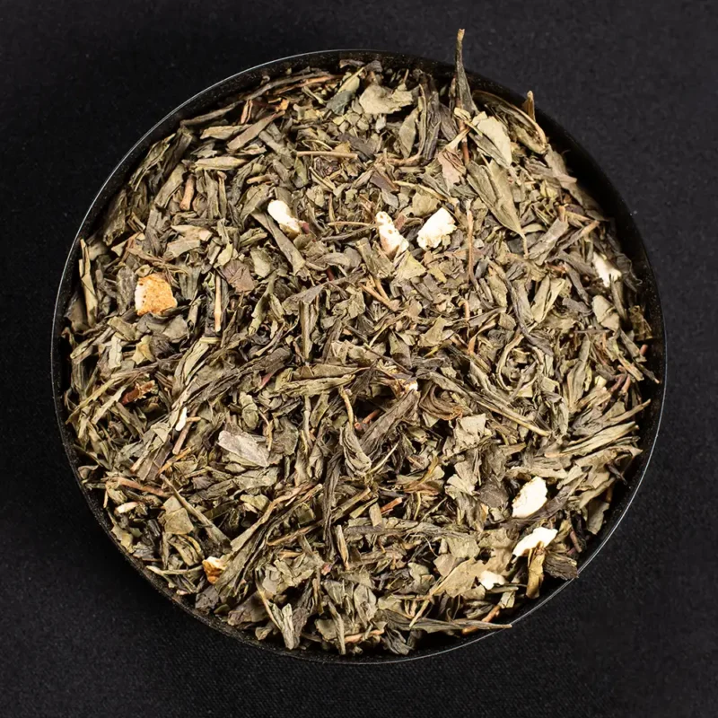 Groene Sancha thee, citroenschil, citroengras, natuurlijke citroenaroma’s